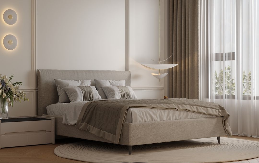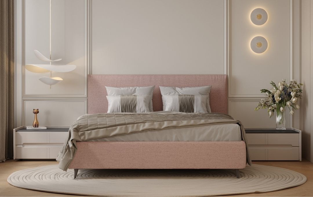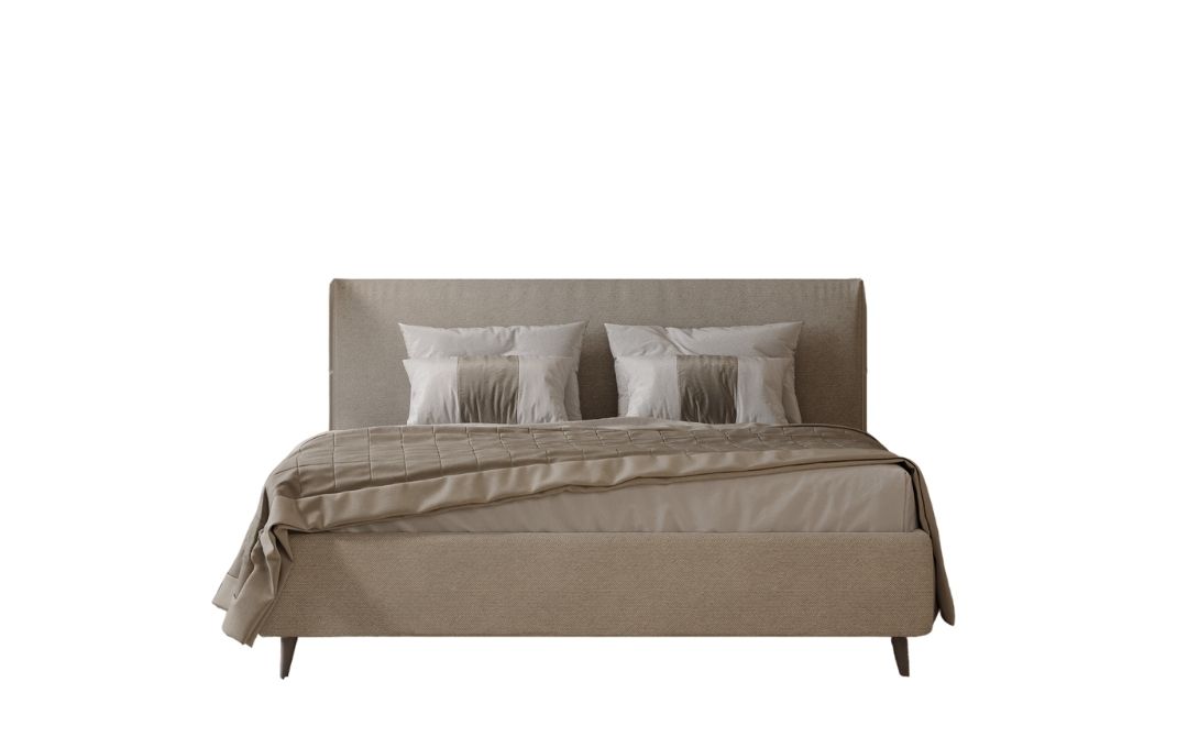 The Rosa Veradea upholstered bed in fabric combines elegance and simplicity through its clean, minimalist design. The standout detail is the decorative ruffle trim along the edges of the headboard, making it an original and versatile choice that fits perfectly into both classic and modern interiors. The bed is available with or without storage, offering solutions for different space needs. The storage version comes with charcoal-colored plastic legs (13 cm high) and a lift-up slatted base mechanism. The non-storage version features elegant wooden legs, also in charcoal, and 24 cm high. Both models include a wooden slatted base to ensure comfort and stability during rest.