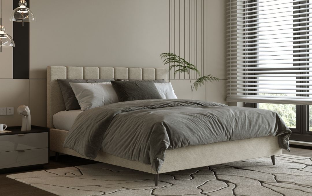 The Tulipano Veradea upholstered bed in fabric blends elegance and simplicity through its clean, minimalist design. Its defining feature is the headboard, enhanced with a stylish vertical pattern, a decorative detail that adds personality and movement while maintaining a refined, sleek look. Equipped with a spacious storage compartment, the Tulipano bed meets greater space-saving needs. It comes with charcoal-colored plastic legs 6 cm high and an integrated lift-up slatted base mechanism. A wooden slatted base is included for excellent comfort and stability.