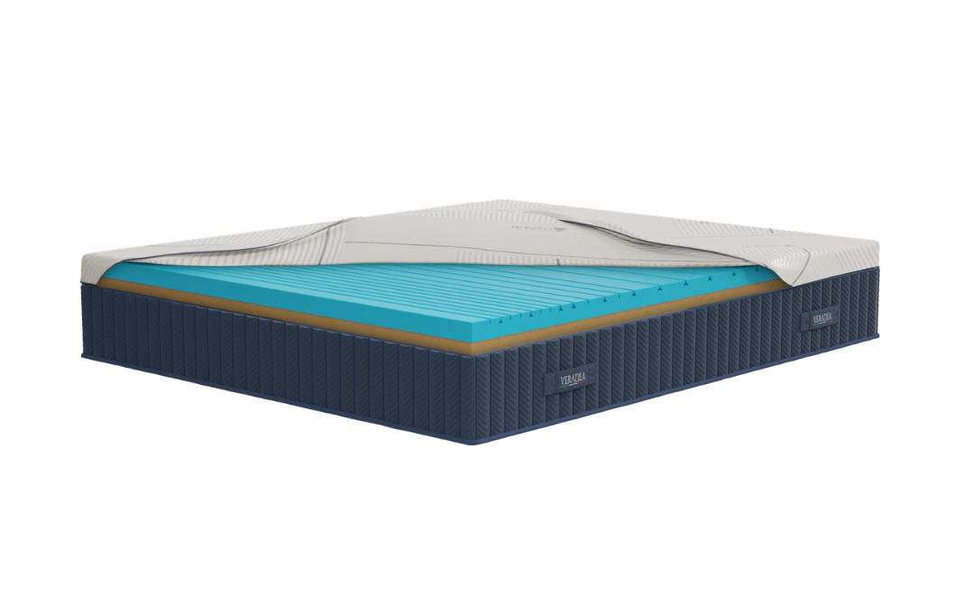 The Veradea Memory Gel Ice mattress is ideal for those seeking firm support across 9 targeted zones, combined with a soft, welcoming surface. The comfort foam provides progressive support, while the high-density base foam, featuring perforations in 3 zones, ensures highly personalized and comfortable support. Thanks to its advanced zoning design, the cooling memory gel foam offers a massaging and adaptive effect. The innovative cover fabric, made with an ice-effect cooling yarn, delivers a pleasantly cool sensation for a uniquely relaxing sleep.